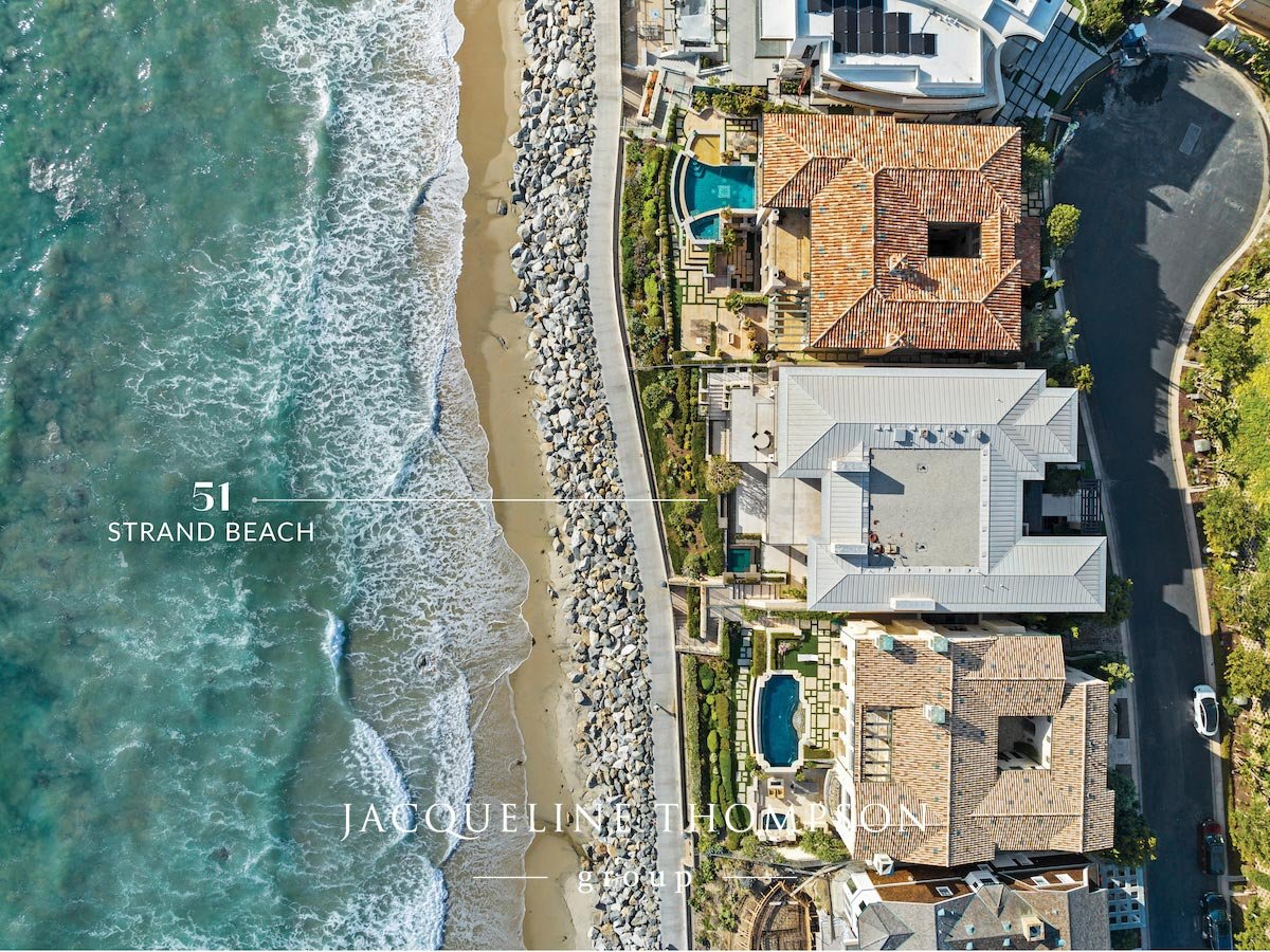 Additional highlights include an outdoor spa, elevator, laundry room, office nook, electronic window shades, built-in barbecue, whole-house water filter and distributed reverse osmosis system, boiler systems with hydronic heating, and 4-car garage. Located halfway between Los Angeles and San Diego and moments from the Ritz-Carlton, the Monarch Beach Resort and the Montage Resort and Spa. The Strand Beach Club is a private 9,000 sq ft clubhouse with fitness center, swimming pool, bar and open lounge nestled just 25 feet above the sand. Inquire on fifth bedroom.