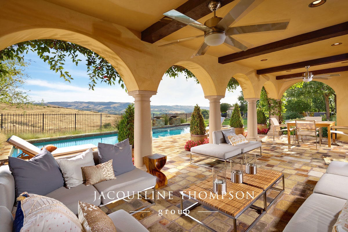 This beautiful custom estate with chic transitional elements features 4 bedrooms, 4-and-2-half baths, an office, a bonus room, central courtyard with fireplace, refrigerated wine storage, and large bonus room with views. Luxe modern-day amenities ensure comfort and style go hand-in-hand such as the beautiful disappearing wall of glass doors showcasing stunning views while striking light fixtures finish every space.