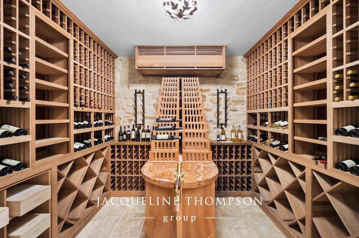 Once on the subterranean level the pursuit of entertainment begins with a handsome bar that services a family room with entertainment center that easily doubles as a casual home theater with a hidden projector or the wine tasting room beside the approx. 1,800 bottle wine cellar of your favorite wine. Additionally, a home gym and ensuite bedroom complete this level. On the second level, the attention to detail continues, offering a bonus room lined with custom built bookshelves and anchoring three-bedroom suites, two sharing a Jack-and-Jill bathroom with its sweet farm sink, one of which is set up with built-in bunk beds and the third ensuite bedroom offers an oversized walk-in closet.