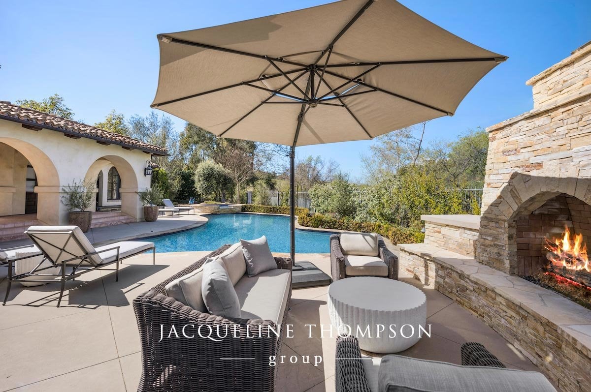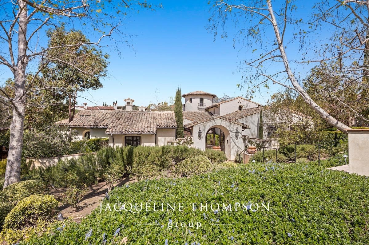 The entertaining rear grounds, landscaped by Rogers Gardens, are sprawling and abut part of the Shady Canyon preserve for added privacy and offers rose gardens, two lawns, outdoor fireplace, and pool with spa. The luxurious primary suite occupies an entire wing of the main level featuring a home office with fireplace and a peaceful sanctuary with multiple French doors out to the rear grounds. The relaxation continues with dual bathrooms, each with its own generous walk-in closets, dual water closets, a shared steam shower, freestanding soaking tub, a vanity area, heated floors and access to a private garden with outdoor shower.
