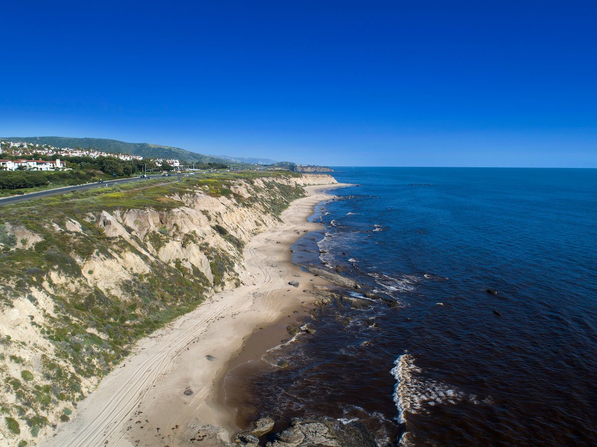 On the main level, enjoy a remodeled Chef's kitchen with stainless steel Viking appliances, large center island for food preparation and dining, as well as a breakfast nook and adjoining family room with fireplace - all with breathtaking ocean and bluff views. Step outside through French doors to the backyard inviting open air entertaining with covered loggia and built-in barbecue or enjoy quiet contemplation amid picturesque vistas of the pacific dissolving into the distance. Also ideal for entertaining, the formal dining room opens to an alfresco courtyard with fountain and additional space for dining or lounging. Additionally, you'll find a powder room with Venetian plaster walls, as well as laundry room on the main level of this residence.