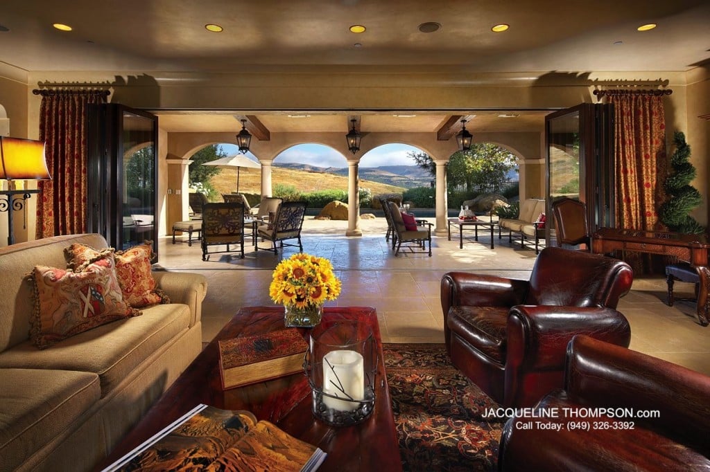 The more than 8,500 square foot 6 bedrooms/9 baths home takes advantage of the pastoral canyon and hillside views and has been designed for alfresco living year-round, with abundant loggias, terraces and an expansive central courtyard that washes the interiors in sunlight.