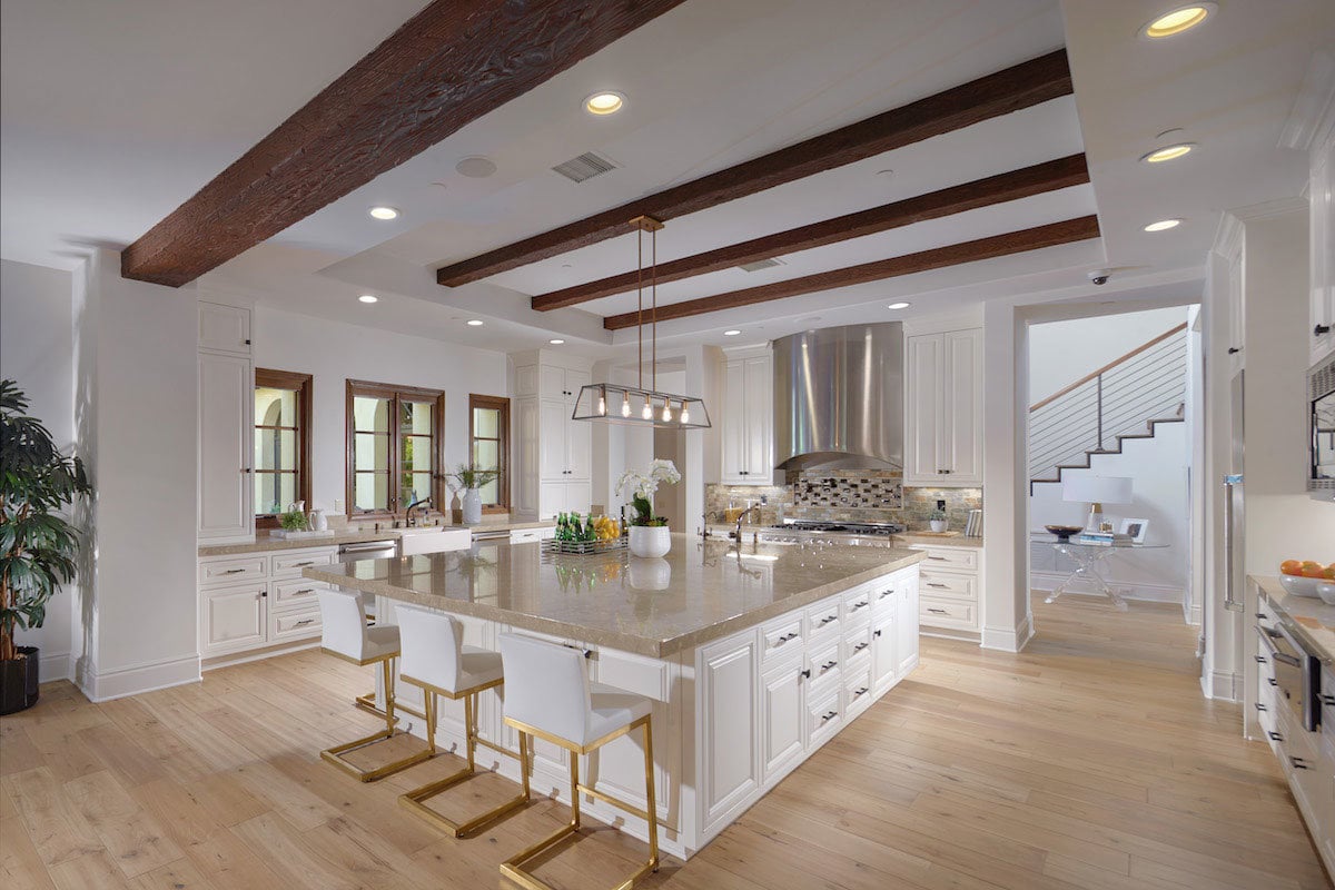 Throughout the home, you'll note a high-quality level of customization and finishes, including the extensive use of exquisite stones, wood beam ceilings, custom light fixtures, light hardwood plank flooring, sleek millwork finishes, and an unrivaled attention to detail. Built for entertaining, the residence features a large-scale, open-format kitchen opening to the equally oversized family room, an outdoor kitchen with built-in barbecue, sink & sit-down counter for eating, formal living and dining area, and multiple outdoor living areas.